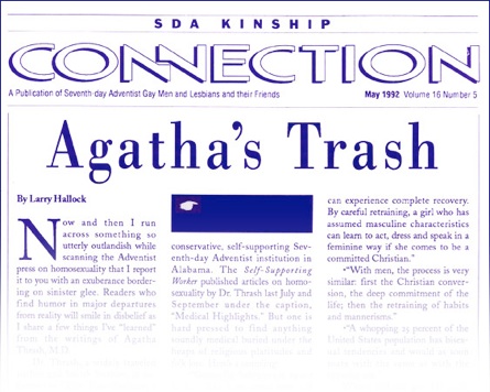 Now and then I run across something so utterly outlandish while scanning the Adventist press on homosexuality that I report it to you in a state of disbelief. You, dear readers, might find some humor in these major departures from reality gleaned from the writings of Agatha Thrash, MD. Last year’s July issue of Self-Supporting Worker contained an article by Dr. Thrash titled “Medical Highlights.” But one is hard pressed to find much of anything soundly medical buried under the heaps of religious platitudes and folk lore. Here’s a sampling of Agatha Thrash’s pearls of wisdom: