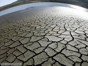 Exposed mud banks at a reservoir in Spain, November 2007.