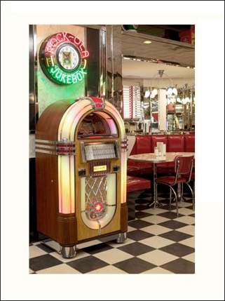 I need to part with this box for several reasons. Mainly, I badly need a treadmill (I’m an early baby boomer, if you catch my drift) and there’s really no other place to put my new exercise equipment. Plus my decor could use a new focus; it’s time for me to pass this particular nostalgia on to someone just getting into it. If you want a touch of quaint nostalgia for your home, just be sure you go with one that plays 45s. CDs are so much a thing of the past that, since 2006 already, Rock-Ola/Antique Apparatus has been manufacturing the same bubble-style reproduction without any mechanics at all—no CDs or records. All the music plays from a hard drive, and all you see is a screen; you can stand there and read the singer’s biography, but you can’t watch anything happen. What fun is that? Your perfect choice in a jukebox is the one I have!